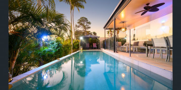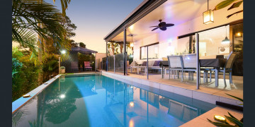 The ground floor showcases a generous open-plan living and dining area, where expansive windows frame the serene poolside views. With 270cm high ceilings, natural light floods the space, making it an ideal setting for cinematic shots, editorial photography, and lifestyle content. The seamless indoor-outdoor flow extends to the poolside alfresco area, where a covered patio and direct waterfront access provide a striking location for outdoor scenes. Every angle of this property captures an effortless balance of modern sophistication and relaxed coastal charm.