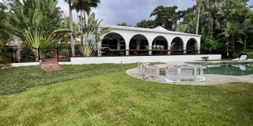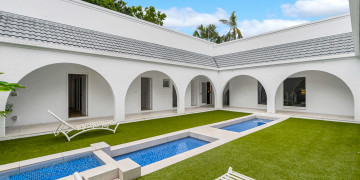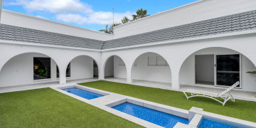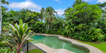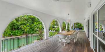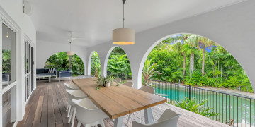 This stunning private oasis is set on a 1500m2 elevated block rich with tropical gardens and palm trees. The house is a rendered block 90's masterpiece with expansive arches, oversized indoor and outdoor living areas with an 18m pool and courtyard water feature surrounded by lush tropical foliage.