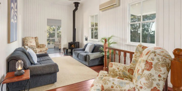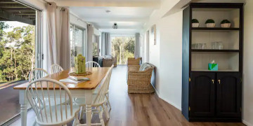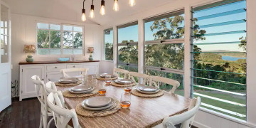 Inside beautiful wood floors flow throughout the home. The deck, outdoor table and BBQ area, offer views of the dam and mesmerising sunrises. A country-style kitchen upstairs, dining room's windows framing vistas of the surrounding countryside/dam and a cosy sitting room with indoor fireplace and air-conditioning. Downstairs features a main living area, complemented by a kitchenette with fridge/microwave/coffee_machine/washing_machine/dining table. Outside includes beautiful 10x5m pool and separate double garage converted into a games room, with tabletennis table and dartboard.