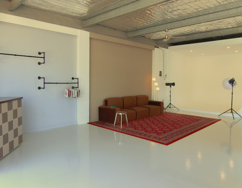 Renowned for its exceptional natural light, the studio is filled with sunshine throughout the day, streaming in through a wide garage door opening and a striking wall-length window. The result is soft, editorial-quality light that adapts beautifully across a range of shoots — from stills and video to campaigns, interviews, and content production.