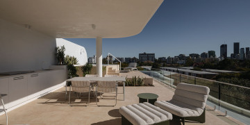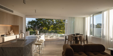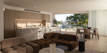 The Penthouse at Sting is a unique residence in New Farm, featuring masterful design and luxurious finishes. It includes three spacious bedrooms, a versatile media room, and a stunning kitchen with a 4.5m stone island. The expansive living area opens to a 21 sqm balcony, enhancing indoor-outdoor living.