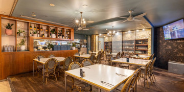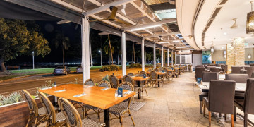 The space centres around a main bar, with a mix of indoor dining areas and an outdoor terrace that captures the sea breeze and expansive water views. Generous in size and naturally lit throughout, the venue provides multiple zones that can be used flexibly, from relaxed meals to busier, high capacity functions.