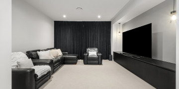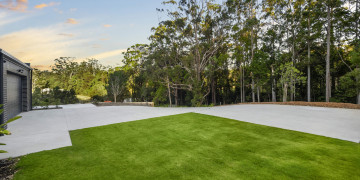 Commanding its position in the Gold Coast Hinterland, The Godfather is a bold, cinematic residence defined by scale, sophistication, and presence. This expansive two storey modern home is framed by sandstone walls and a sweeping 60-metre driveway leading to an elevated position surrounded by manicured lawns, sculpted gardens, and natural bushland. Designed with a refined minimalist aesthetic, the home celebrates open space and clean architectural lines—ideal for film, television, and commercial productions seeking grandeur and control over light and movement.