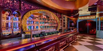 Upstairs, the Parlour and The Vault evoke a vintage yet futuristic aesthetic, complete with cabinets of curiosities and memorabilia that are not just for display. This eclectic space, inspired by a scavenger aesthetic where everything is repurposed, sets the stage for innovative productions or high-end events that demand something out of the ordinary.