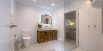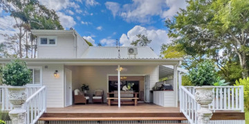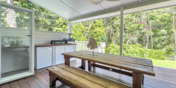 A wraparound porch extends the living outdoors, opening to expansive lawns and multiple zones that can be styled to suit a range of uses. From the signature fairy light tree to the gentle proximity of Tallebudgera Creek, every element of the property enhances its sense of tranquillity and escape.