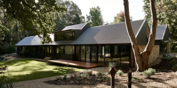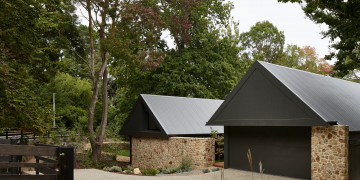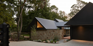 Set within the tranquil Adelaide Hills, Nio House is a contemporary retreat that seamlessly blends architecture with landscape. Referencing the region’s traditional hillside homes through pitched iron roofs and locally sourced stone, the design feels both grounded and timeless.