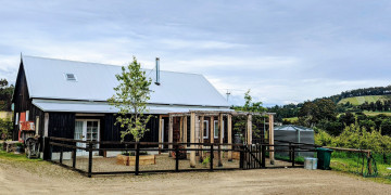 Originally built in 1935, this charming barn has been transformed into a unique space that seamlessly blends cozy living with colonial eclectic touches. The expansive open living area, complete with exposed beams and a charming fireplace, creates a warm and inviting atmosphere that is perfect for shoots or gatherings. The large deck overlooks a picturesque orchard, offering an ideal setting for outdoor scenes, stargazing, or catching glimpses of the Southern Lights.