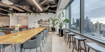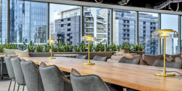 Designed with large teams in mind, 9 to 5 can accommodate production crews with ease. The space includes a café, boardrooms, breakout zones, and modern bathrooms, ensuring seamless functionality for any shoot or event. Its open layout allows for flexible staging, while its sleek interiors and panoramic views create a cinematic quality that translates beautifully on screen. Whether capturing an executive boardroom scene, a contemporary co-working atmosphere, or a stylish lounge aesthetic, this location delivers the perfect balance of corporate refinement and creative energy.