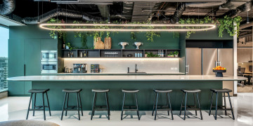 This versatile space offers multiple zones designed for both functionality and visual impact. From stylish open-plan lounges to private offices, a high-end boardroom, and a fully equipped kitchen, 9 to 5 provides a range of settings to suit various production needs. Floor-to-ceiling windows flood the space with natural light, enhancing its already striking architecture. The combination of exposed ceilings, lush greenery, and premium furnishings adds a layer of sophistication, making it an ideal backdrop for editorial shoots, commercials, and corporate productions.