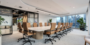 Perched on the edge of the city in Southbank, 9 to 5 is a brand-new, high-end renovation that seamlessly blends modern corporate aesthetics with a sleek, industrial edge. With 180-degree panoramic views of the Melbourne skyline, MCG, and the bay, this stunning location provides an impressive backdrop for any creative project. Its open, light-filled spaces create a dynamic and adaptable environment, perfect for projects requiring a polished, high-end corporate setting.