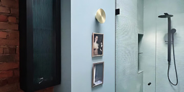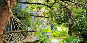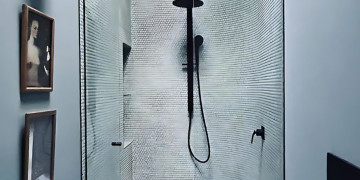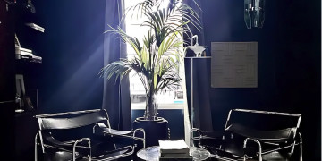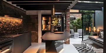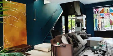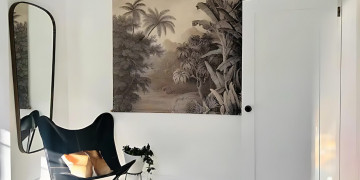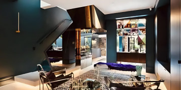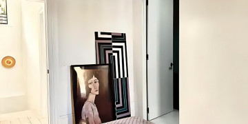 An elegant main bedroom and two further double bedrooms, brick and blue tiled bathroom, laundry and powder room are some of the other spaces available. The sunny functional kitchen, filled with natural light leads to a Provencal-style courtyard, opening out to a tranquil north-facing garden bordered by palm trees. This unique location provides rich and moody backdrops whilst preserving original period details, perfect for creative projects looking for loads of visual interest.
