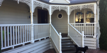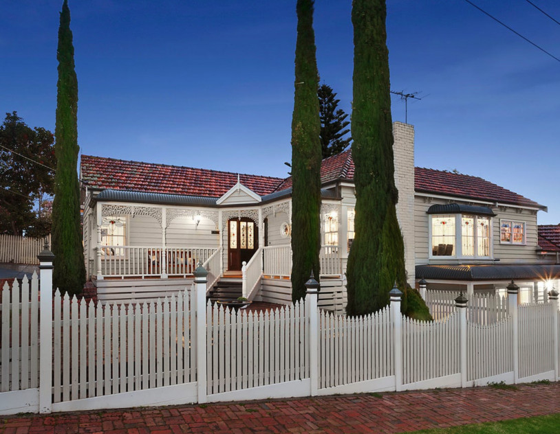 Aberley is a beautifully renovated 1950s weatherboard home infused with timeless Victorian charm. Situated on a prominent corner block, the house boasts a decorative wraparound verandah, a serene water fountain, majestic pencil pines, and a classic white picket fence, creating an elegant and welcoming presence.