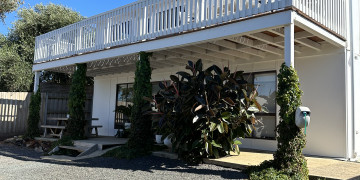 Flooded with natural northerly sunlight, the interiors invite long, lazy days by the sea, perfect for families and groups looking to unwind together. A wide verandah wraps the home, offering the ideal spot to soak up the ocean breeze and sweeping views. With open, light filled spaces and a warm coastal aesthetic, Anchor Place provides the perfect backdrop for memorable getaways and cherished moments.