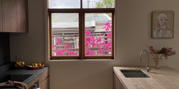 The heart of the home, the kitchen, now boasts a refined yet functional design with a touch of masculinity, featuring timber accents and travertine elements that seamlessly merge the indoors with the natural beauty of the outdoors. The bathrooms have undergone a stunning metamorphosis, showcasing a sophisticated blend of forest-hued tiles and luxurious travertine fixtures, creating a serene space. With meticulous attention to detail and a thoughtful selection of colours and artwork, the result is a carefully curated space that not only reflects impeccable design but also embodies warmth and comfort. This location is an inner city sanctuary where beauty and functionality converge effortlessly create the perfect backdrop for your next creative project.