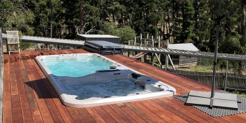A large deck with a set in swim spa wraps around the rear of the house. Set on 10 acres, the property includes an almost eerie/ spooky pine forest, rural views and bushland. There is also creek at the rear of the property.
