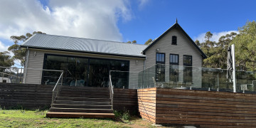 The former Bulla Primary School built in 1870 is located at the end of a country lane nestled in a green valley. The school has been converted to a modern family home featuring exposed bluestone and brick, high ceilings, Victorian features and floor to ceiling commercial double glazed sliding window/ doors.