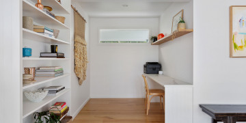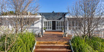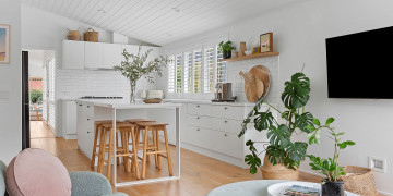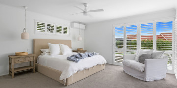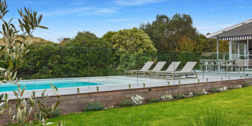 With beautiful wide oak flooring, white walls and plantation shutters throughout adding a touch of relaxing coastal flair, the open plan living area opens out to the wrap-around deck featuring the pool and spa which is surrounded by lush lawns bordered by a thick hedge. This laid back coastal location is perfect for lifestyle shoots or productions looking for a simple pristine backdrop.