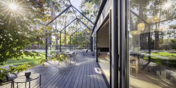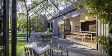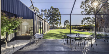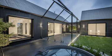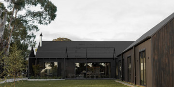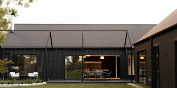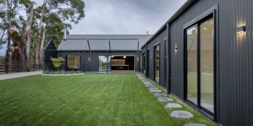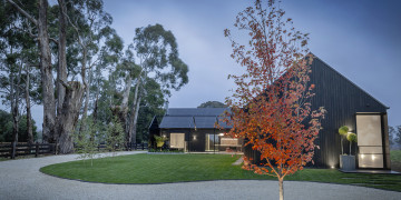 Set against the serene, tree-lined avenues in Glenlyon, Barn Song unfurls over 2934sqm, blending unparalleled luxury with the tranquil beauty of its environment. Its striking black facade and modern design standout, enhanced by garden lighting that highlights the structure and the surrounding trees, offering a stunning visual experience for your next creative project.
