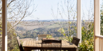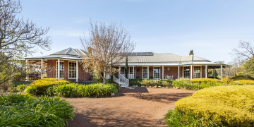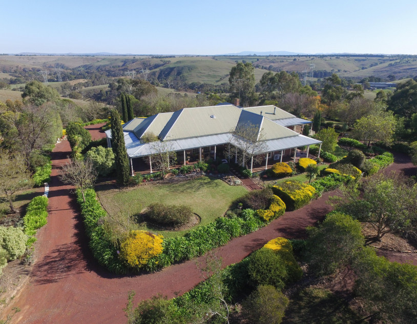 A wide wraparound verandah encircles the entire home, creating a seamless connection to the landscape and offering ever-changing vantage points across the surrounding hills. Outdoors, the grounds unfold with two dams, an original shed, and a separate studio, adding further depth and versatility for production or events.