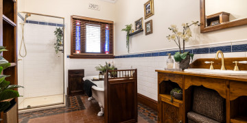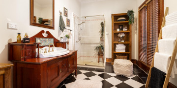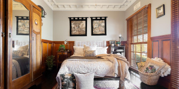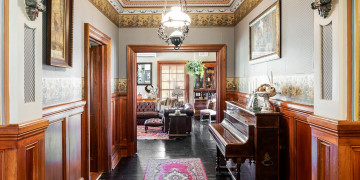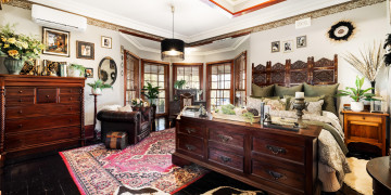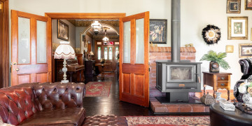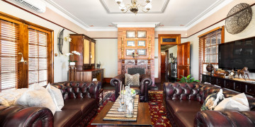 The home retains its original character throughout, with rich dark floorboards, layered vintage rugs, and beautifully detailed hand painted cornices and ceiling roses. Generous proportions and soaring ceilings enhance the sense of space, while multiple living zones provide a variety of backdrops for filming and photography.