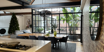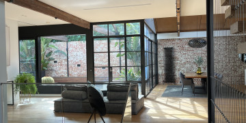 Step into the Brickworks Loft, an extraordinary New York-style warehouse conversion offering three stories of industrial elegance. This red-brick building, featuring expansive industrial-style windows, captures a unique combination of raw, grungy charm and sleek, modern sophistication. The exterior retains its authentic industrial aesthetic, while the fully renovated interior unfolds into a spacious and stylish sanctuary, perfect for creative productions and events.