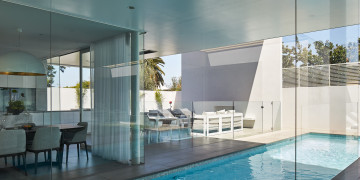 The outdoor pool is a major highlight with the backdrop of this beautifully designed location filled with glass and light.