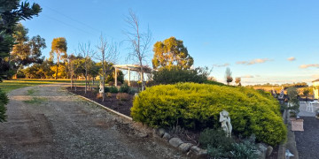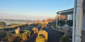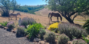 From the expansive kitchen with its massive black granite island to the serene garden filled with 200 lavender plants, pergolas, and towering gum trees, this property is designed to inspire. The rustic bluestone ruins, nestled under peppercorn trees, provide a distinctive setting, adding a sense of history and character to any project.