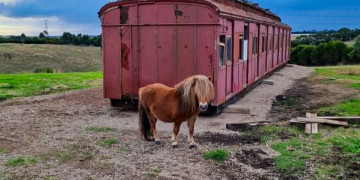 Adding to its charm, Charlie Boy features a renovated 1910 Red Rattler train carriage, perfect for creative shoots or events, with completion in just four weeks. Overlooking rolling hills with sheep, horses, and donkeys, this unique carriage is a visual centerpiece for any scene or activation.