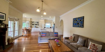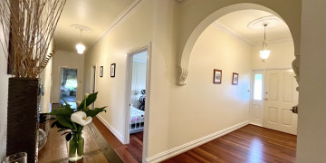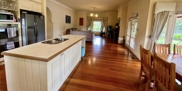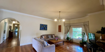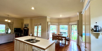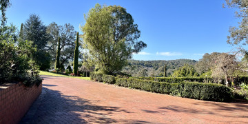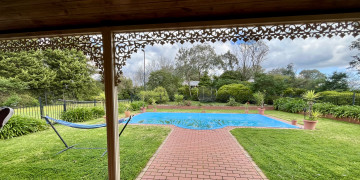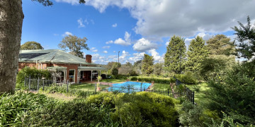 This Federation style house on 1 acre with a tennis court and in ground swimming pool is a true blue real life Aussie location. Sitting gracefully on the top of a hill at the end of a court, it is surrounded by lush lawn and beautiful established trees. The high ceilings, lattice work, rendered cornices, lights and light fittings and 2 fireplaces are reminiscent of the period.