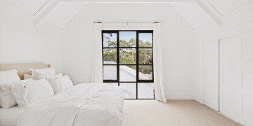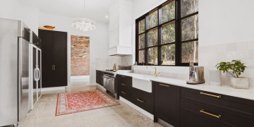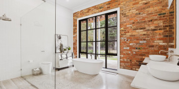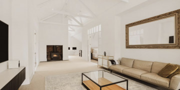 Built with character and intention, the home incorporates original bricks salvaged from Geelong’s historic National Hotel, fusing heritage texture with modern materials. Inside, the palette is rich and editorial—polished concrete, chevron timber floors, oversized steel-framed windows and sculptural lighting come together in a space that feels both grand and grounded. Every detail has been carefully curated to inspire, making it a versatile and layered environment for creative production.