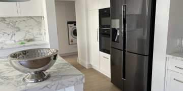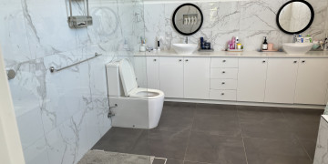 The expansive open-plan living and dining area is bathed in natural light and framed by soaring ceilings, providing a bright and inviting canvas that lends itself beautifully to editorial and film work. A sleek designer kitchen with stone benchtops, a generous breakfast bar, and high-end appliances completes the main living zone, while five thoughtfully styled bedrooms allow for flexibility in staging scenes with personality and depth. Contemporary bathrooms with clean finishes and a neutral colour palette make the space effortlessly adaptable to a variety of visual styles.
