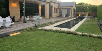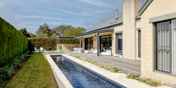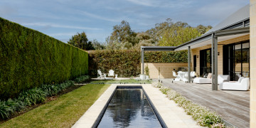 Beyond the interiors, a full-length 17.5-meter pool stretches elegantly along the home’s edge, reflecting dappled light and surrounded by an exquisitely manicured garden inspired by the geometry and order of Paul Bangay’s iconic designs. The outdoor area features blonde timber decking, sculptural hedges, and multiple zones for lounging, dining, and gathering—ideal for fashion editorials, retreat activations, or dreamy golden-hour scenes.