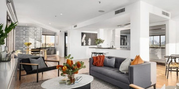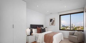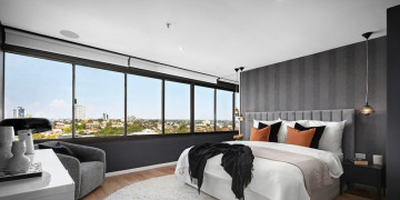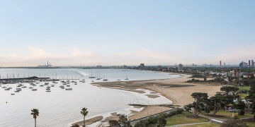 A light-filled St Kilda apartment located on the 10th floor of an iconic 1979 Norman Day–designed building. Offering 270-degree views across Melbourne’s city skyline and Port Phillip Bay, this architecturally significant space provides a striking backdrop for film, photography, and events.