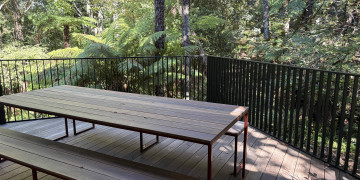 A beautifully renovated Californian Bungalow set within a lush perennial garden with serene forest views. The home features a bespoke stainless steel kitchen, open-plan dining and living area, and large architectural doors that open onto a spacious deck overlooking Australian gum trees and ferns. The property includes a flowing Ferny Creek, adding a tranquil, natural backdrop. Interiors are styled with European designer furniture and an extensive selection of props available for shoots. Exterior highlights include striking Shou Sugi Ban (charred timber) cladding, while inside offers a warm wood fireplace and light-filled, inviting spaces perfect for both lifestyle and editorial photography.