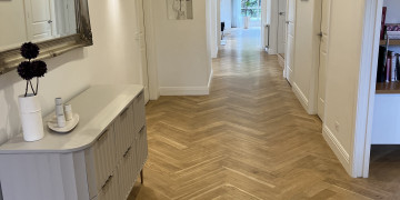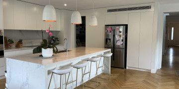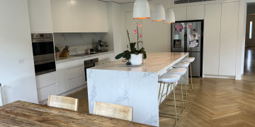 Georgie is a light-filled, architectural family home that blends modern minimalism with elegant design. The property features a grand façade with a gated entrance and landscaped front garden, offering a sophisticated and secure arrival point for any production. Inside, the home is airy and contemporary, with crisp white finishes, herringbone timber floors, and expansive windows that bathe the space in natural light.