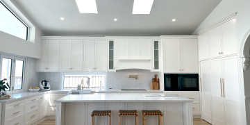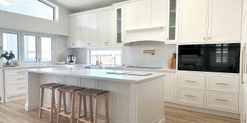This modern new build features large indoor and outdoor spaces with minimal contemporary interiors and an abundance of white throughout making it the perfect blank canvas. Raised ceilings including a cathedral ceiling in main living/dining area, skylights and bay windows with plantation shutters that fills the spaces with natural light.