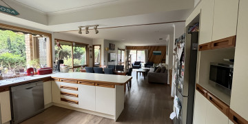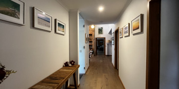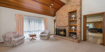 The layout includes two inviting living areas, with the original kitchen seamlessly connected to the second lounge for a cozy and functional flow. The home's three bedrooms and two bathrooms are conveniently situated off a central hallway, offering privacy and practicality. A fresh coat of paint and updated flooring breathe new life into the space while preserving its authentic character.