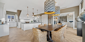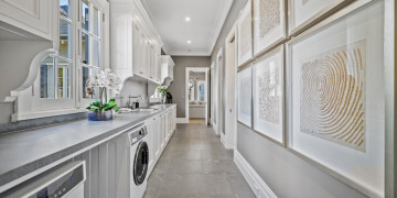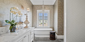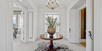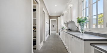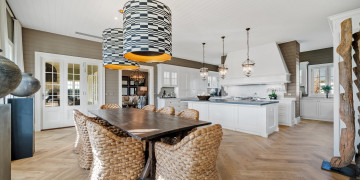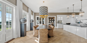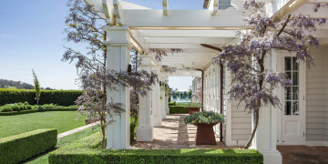 The approach to the estate sets the tone for what lies beyond — a winding, tree-lined driveway opening to a picturesque country manor that feels lifted from the pages of an English estate novel. Signature Akehurst features — from the slate roofing and copper spouting to the wisteria-covered pergolas and Castlemaine stone chimneys — establish an immediate sense of character and enduring craftsmanship. Inside, the home glows with natural light and harmonious proportions. Each room is bathed in views and light from both sides, making the home feel transparent, open, and in perfect conversation with the surrounding gardens.