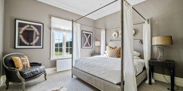 The private quarters offer immense flexibility for productions. The main suite includes a deluxe dressing room and spa-style en suite, complemented by a gym, library or home office, and a guest wing with its own en suite and robe. A children’s retreat contains three double bedrooms, a large bathroom, and a spacious media room — all styled with refined understatement and layered textures, ideal for lifestyle and editorial filming.