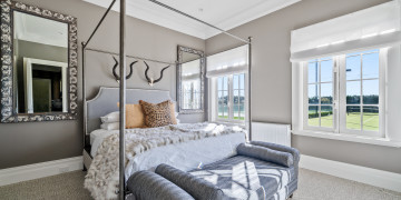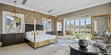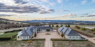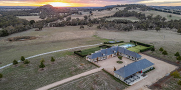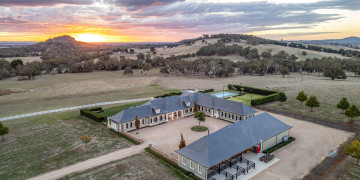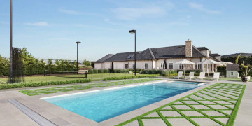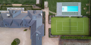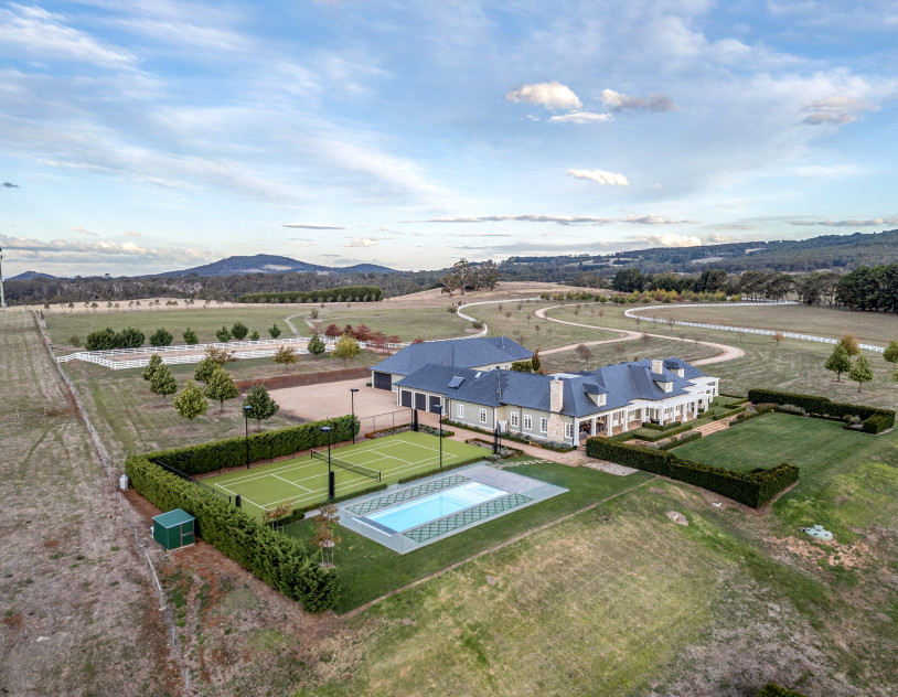Outside, the estate's grounds are just as spectacular. The Paul Bangay-designed gardens unfold in manicured rooms and walkways, revealing a gas and electric-heated pool, a north-south mod-grass tennis court, and equestrian facilities including six stables (three undercover), a horse menage, and a dedicated pet room. Multiple storage buildings and garages provide space for production logistics and crew requirements, in addition to the generous three-car garage attached to the main residence.