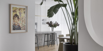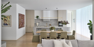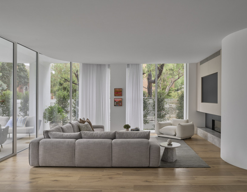 This property is the perfect shoot location for all brands. Incredible curves and textures form a great backdrop for campaigns and stills shoots. The property features beautiful natural light and soft sheer curtains throughout. This four-bedroom, architecturally designed ground floor apartment spans the entire level and features a private swimming pool, basement cellar and expansive gardens. Featuring premium fixtures and fittings throughout including limestone kitchen and marble bathrooms and extensive joinery.