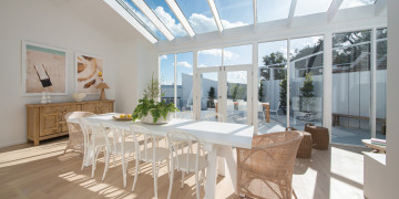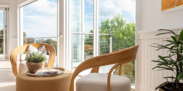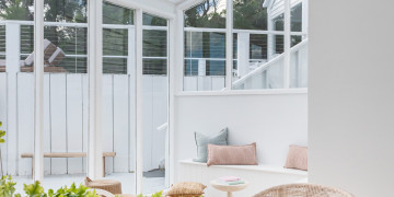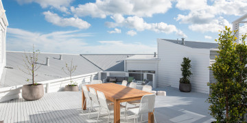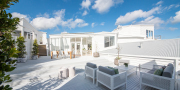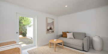 The light-filled architectural design delicately balances modern style and with coastal cool. 12 private suites of varying sizes all include ensuite bathrooms and private outdoor decks. Shared spaces include a communal kitchen, atrium breakfast room with an opening onto a sun drenched deck, lounge with ambient fireplace and conference room. This unforgettable location provides the perfect vantage point to capture the painted sunsets from every room, making it the perfect space for your next creative project or event activation.