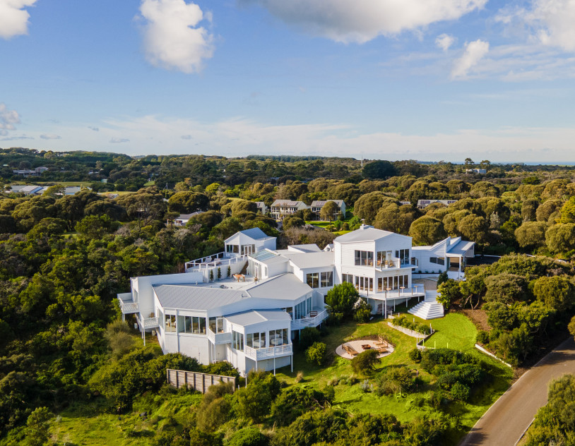 Situated in the heart of Cape Schanck with panoramic vistas of Bass Strait and the rolling green hills, this exquisite location is awe-inspiring both inside and out. The stunning scenery can be admired from every room including the twelve bedrooms. From the elegantly appointed bedrooms to the stunning shared spaces, this location boasts a remarkable array of areas that have been thoughtfully designed and beautifully curated to create spaces that are light, breezy and relaxed.