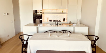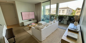 Inside, you'll find a beautifully fluid layout defined by muted tones, natural textures, and expansive wall-to-wall glass that blurs the line between indoors and outdoors. Wide oak floors and lofty ceilings amplify the sense of space and light, while the open-plan living and dining areas, alongside a generous home office retreat, offer flexible, highly photogenic zones to suit a variety of creative needs.