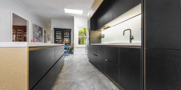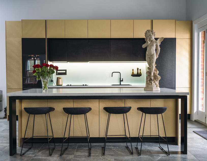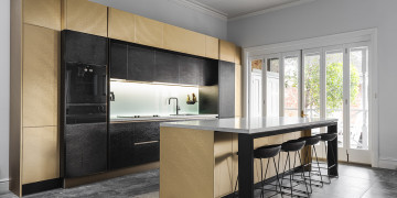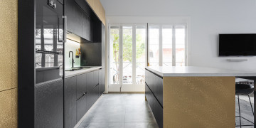 Welcome to Matrix, a stunning 1890s Victorian-style home in the heart of South Melbourne. The centrepiece of this property is its ultra-sleek bespoke Italian-designed kitchen, featuring gold and black finishes that set the stage for striking creative projects. This modern kitchen’s cutting-edge design makes it ideal for showcasing high-end products or culinary concepts.