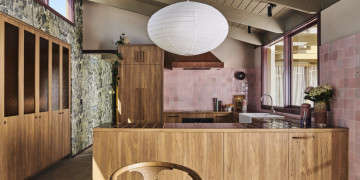 The kitchen is a true hero space. Crafted in warm browns and blush pinks, it channels a refined 1970s sensibility with a modern edge. Timber cabinetry, tactile stone surfaces, terrazzo flooring and soft, ambient light combine to create a playful yet elevated backdrop — perfect for storytelling-led campaigns, product shoots and talent-driven content.