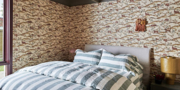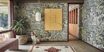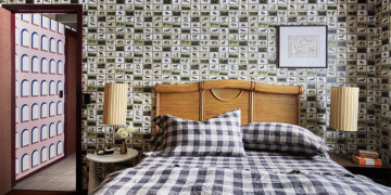 Beyond the kitchen, the home continues to reveal richly styled living and bedroom spaces where patterned walls, custom fixtures and soft natural light create depth and visual interest on camera. Breezeblock screening, strong indoor–outdoor connections and lush garden outlooks further enhance the setting, offering moments of calm contrast to the bold interiors.