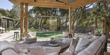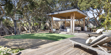 Outside, the property boasts a large backyard with a basketball court and alfresco entertaining areas, perfect for capturing dynamic, outdoor lifestyle content. A standout feature is the open-air outdoor cinema, an atmospheric touch that enhances the home’s relaxed, creative energy—ideal for night shoots or unique event-style productions.