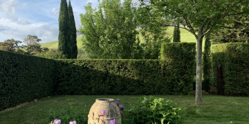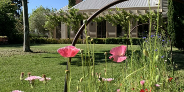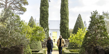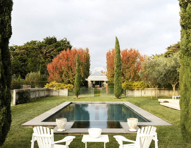Featuring extensive formal gardens across six acres, symmetry abounds throughout with tree lined avenues creating scenes reminiscent of the hills of Tuscany. The property also boasts a Hollywood style pool sitting amongst olive trees and looks towards a flower field, just a short stroll away. Nestled in the volcanic rolling hills at the bottom of a Mount Kooroocheang on 100 acres, this idyllic property is only 15 minutes from Daylesford. Offering an abundance of spaces like no other, this location provides a remarkable setting for shoots or productions.