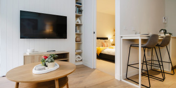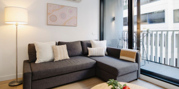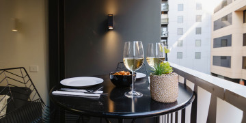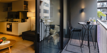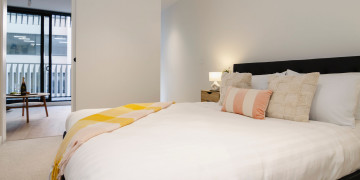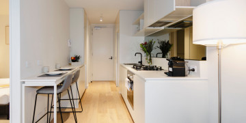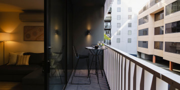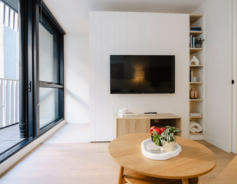 The apartment’s chic and spacious interiors offer a sophisticated aesthetic, with an elegant bedroom featuring a queen-size bed with premium linens and a generous wardrobe, adding a touch of luxury to any scene. With the Royal Botanic Gardens just a stroll away, you have immediate access to lush greenery and serene environments for varied filming needs.